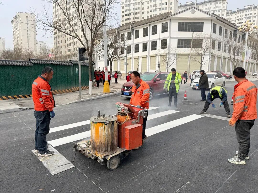 11月21日,记者走进振华路等路段施工现场,只见现场机械轰鸣,工程车辆往来穿梭不停。沥青摊铺机缓缓前行,将滚烫的沥青均匀地吐在路面上。工人们身着工作服,头戴安全帽,手持铁锹,仔细地将不均匀的沥青进行人工找平。不远处,一台清扫车正在清扫路面上的灰尘和杂物,所过之处,路面一尘不染。随后,绘制标线的工作人员依据规划好的标线尺寸和形状,稳定、均匀地绘制着斑马标线。