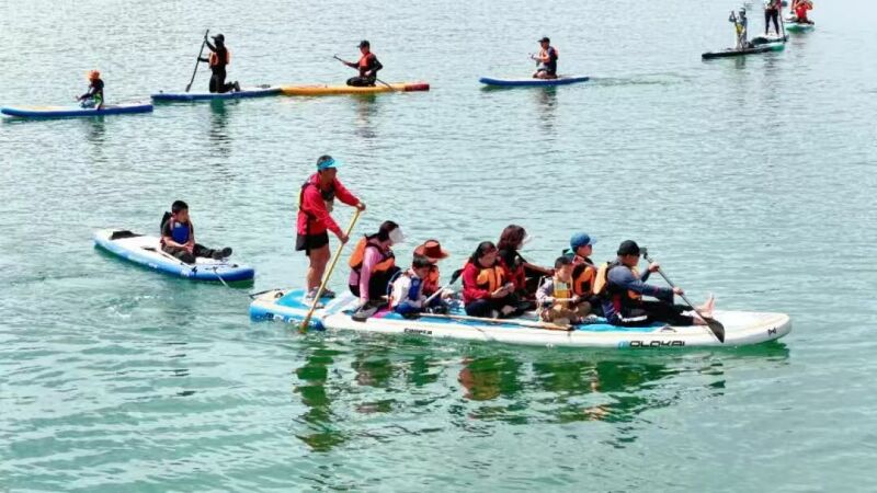 “莲湖泛波 同心起航”临夏县莲花湖上演精彩桨板漂流秀