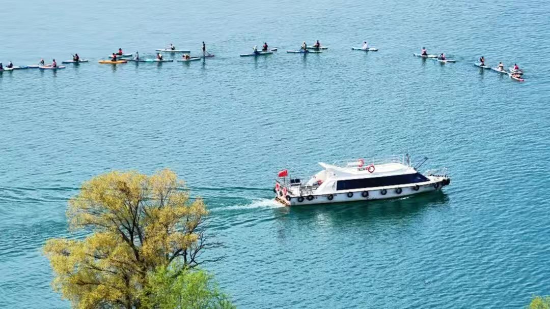 春日晴好,碧波万顷。4月18日,一场别开生面的“莲湖泛波同心起航”桨板漂流表演在临夏县莲花湖景区精彩上演。约50名桨板运动达人脚踏一叶扁舟,在青山绿水间挥桨破浪,上演了一场“水上速度与激情”,为宁静的莲花湖注入了勃勃生机。