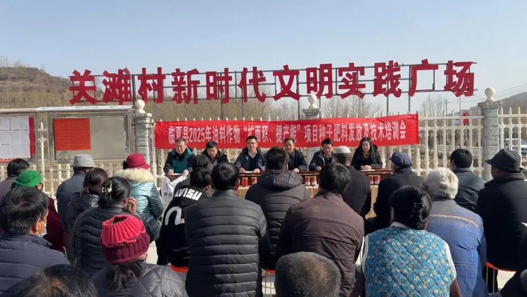 为进一步加强农业生产技术推广,提升农作物产量质量,1月26日,临夏县在麻尼寺沟乡关滩村举办油料作物“扩面积 提产能”项目种子肥料发放及培训会,为广大农民提供“种子+技术”的全方位支持。
