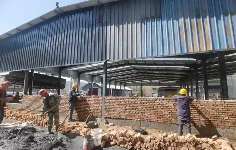 在临夏县牧源养殖农民专业合作社,工人们正在砌筑饲料房墙体,施工人员分工协作、规范作业,项目建设各项工作稳步推进。