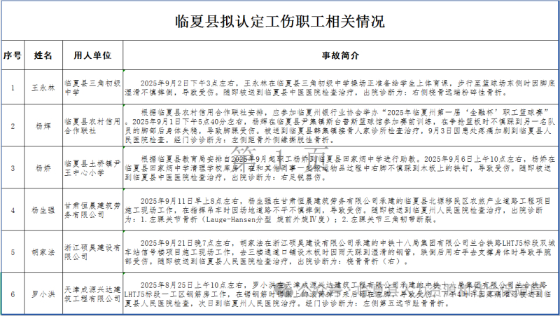附件:临夏县拟认定工伤职工有关情况