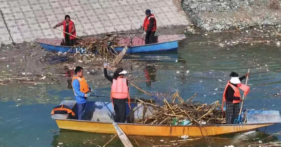 在清理现场,大家分工明确、协作紧密。他们沿着湖岸和滩涂仔细清捡垃圾,打捞船只则在湖面上同步作业,打捞漂浮的垃圾,重点整治白色污染、生活垃圾以及卫生死角。经过集中整治,莲花湖流域的水环境面貌得到了有效改善。