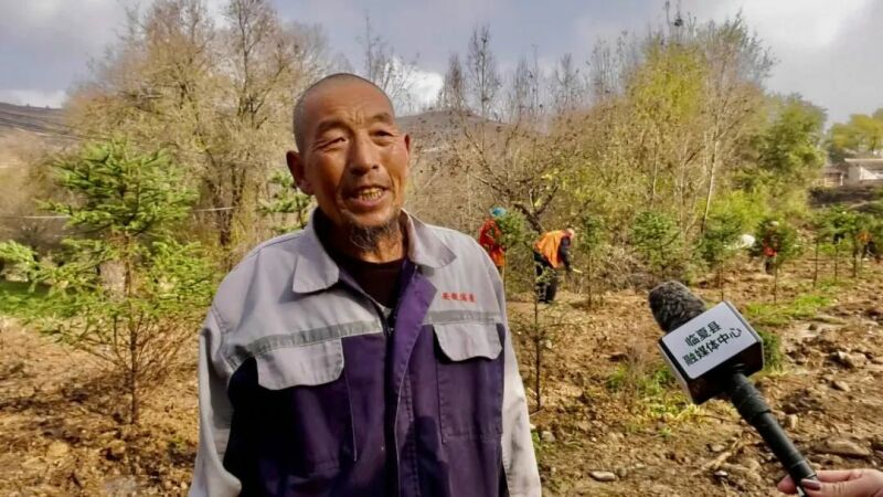 井沟乡大路村群众 李进祥:“大家都是自愿栽植树苗,今年的地气湿润树苗百分百能活,现在我们周围树木品种好也比较多。”