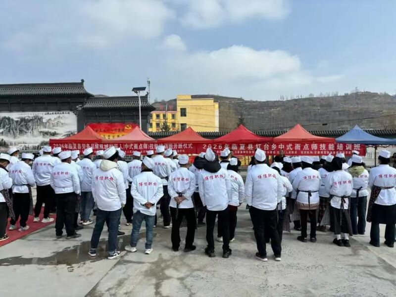 为进一步擦亮“河州味道·临夏美食”劳务品牌,提升农村劳动力就业创业技能,助力群众稳岗增收,3月18日,临夏县红台乡中式面点师技能培训班在乡文化广场正式开班。来自全乡各村的64名群众将参加为期13天的系统学习,在家门口免费学技术、长本领。