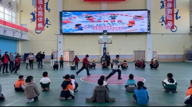 学生 田亚星:“寒假到了,我来到托管班,今天举办了一场运动会,我和朋友们在这儿玩得很开心。”