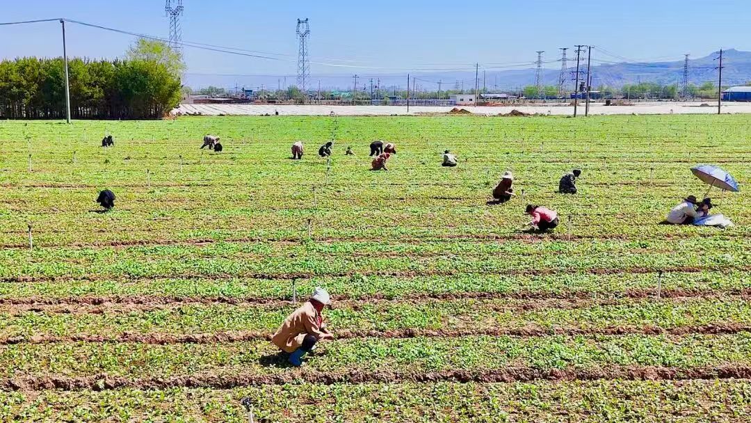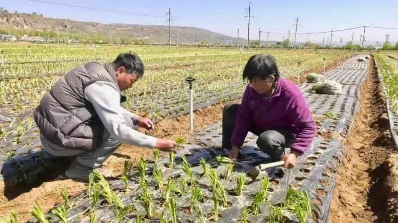 深圳市福之口供应链管理有限公司临夏州分公司负责人 黄炎辉:“今年3月2号开始种植菜心、迟菜、霸王苔,现在开始种植葱,菜心播了大概有800亩左右,估计在5月份左右就可以上市;香葱、小红葱也种植了800亩左右,预计今年6月初采收,盼望今年有个好的收成。”