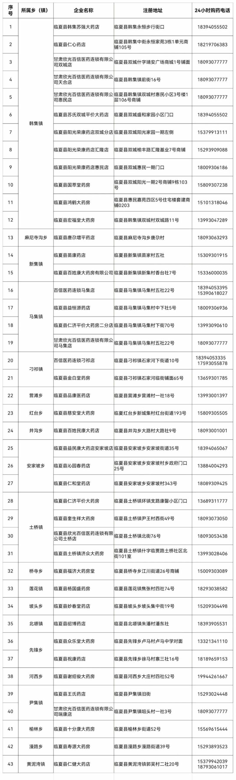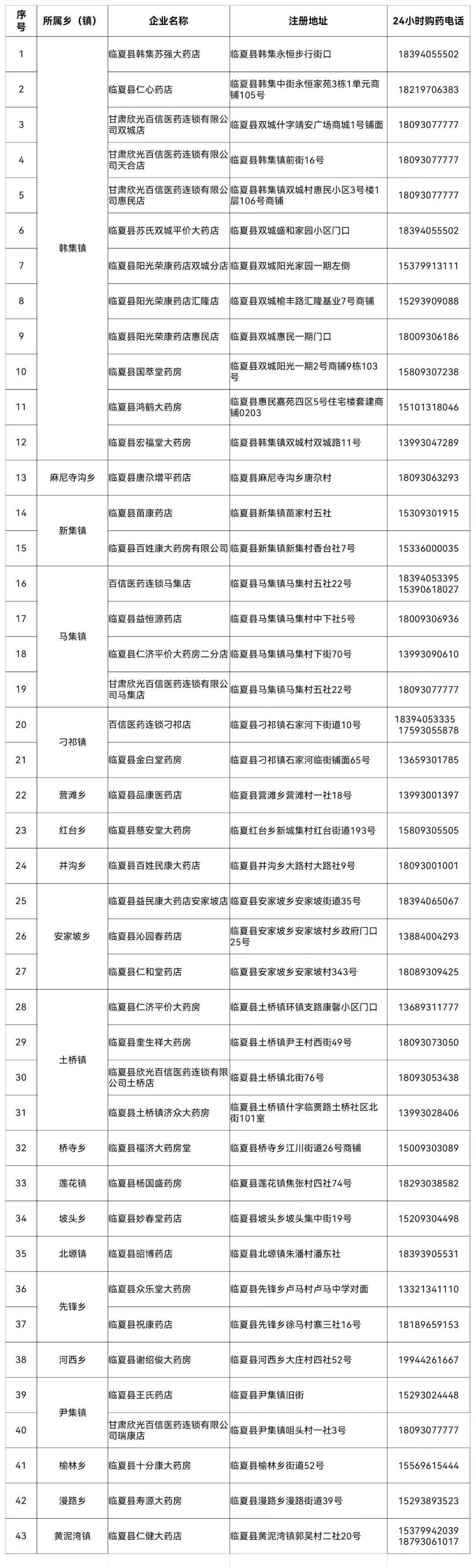 临夏县24小时营业零售药店名单的公告