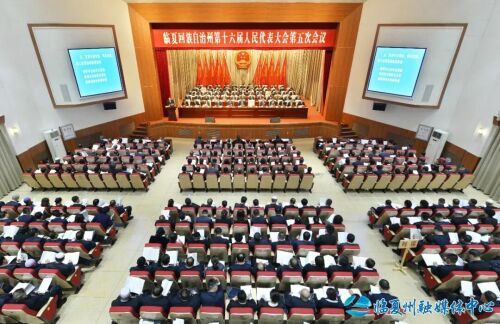 上午9时,大会主持人宣布:临夏回族自治州第十六届人民代表大会第五次会议开幕。全体起立,奏唱国歌。