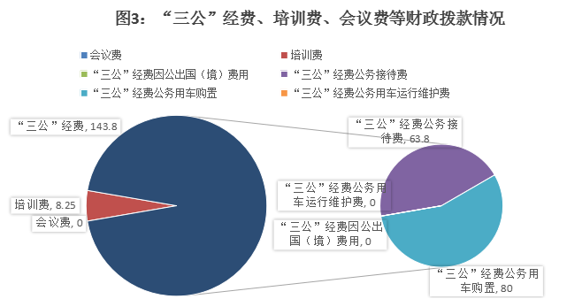 7、“三公”经费:指因公出国(境)费、公务用车购置及运行维护费和公务接待费。其中,因公出国(境)费反映单位公务出国(境)的国际旅费、国外城市间交通费、住宿费、伙食费、培训费、公杂费等支出;公务用车运行维护费反映单位按规定保留的公务用车租用费、燃料费、维修费、过路过桥费、保险费、安全奖励费用等支出;公务接待费反映单位按规定开支的各类公务接待(含外宾接待)支出。
