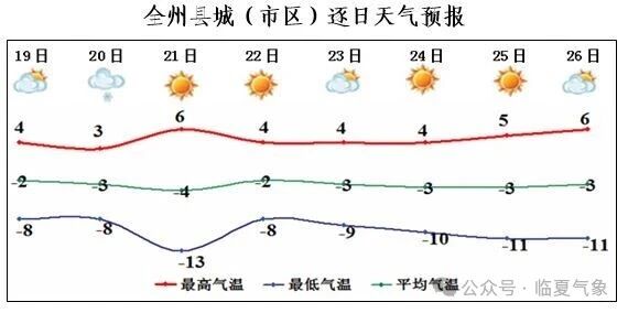 未来一周20日受冷空气影响,全州有降雪降温吹风天气,21~26日冷空气活动较少,全州以晴间多云天气为主。具体预报:12月19日10:00~20日02:00全州晴间多云;20日02:00~14:00全州阴有小雪,偏北风4~6级,海拔较高山区部分乡镇阵风7级,20日02:00~21日20:00全州大部路段有道路积雪结冰;20日14:00~26日20:00全州晴间多云。周内全州最高气温5℃左右,最低气温21日-13℃左右、20日、22~26日-10℃左右。