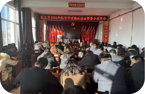 为深入贯彻全面从严治党要求,落实二十届中央纪委五次全会及省州县纪委全会精神,切实筑牢全乡党员干部廉洁自律思想防线,确保全乡干部群众度过一个风清气正、文明祥和、平安有序的春节。2月14日,民主乡召开2026年春节节前集体廉政谈话暨干部警示教育会。全体乡村干部、驻村工作队共计90余人参加会议。