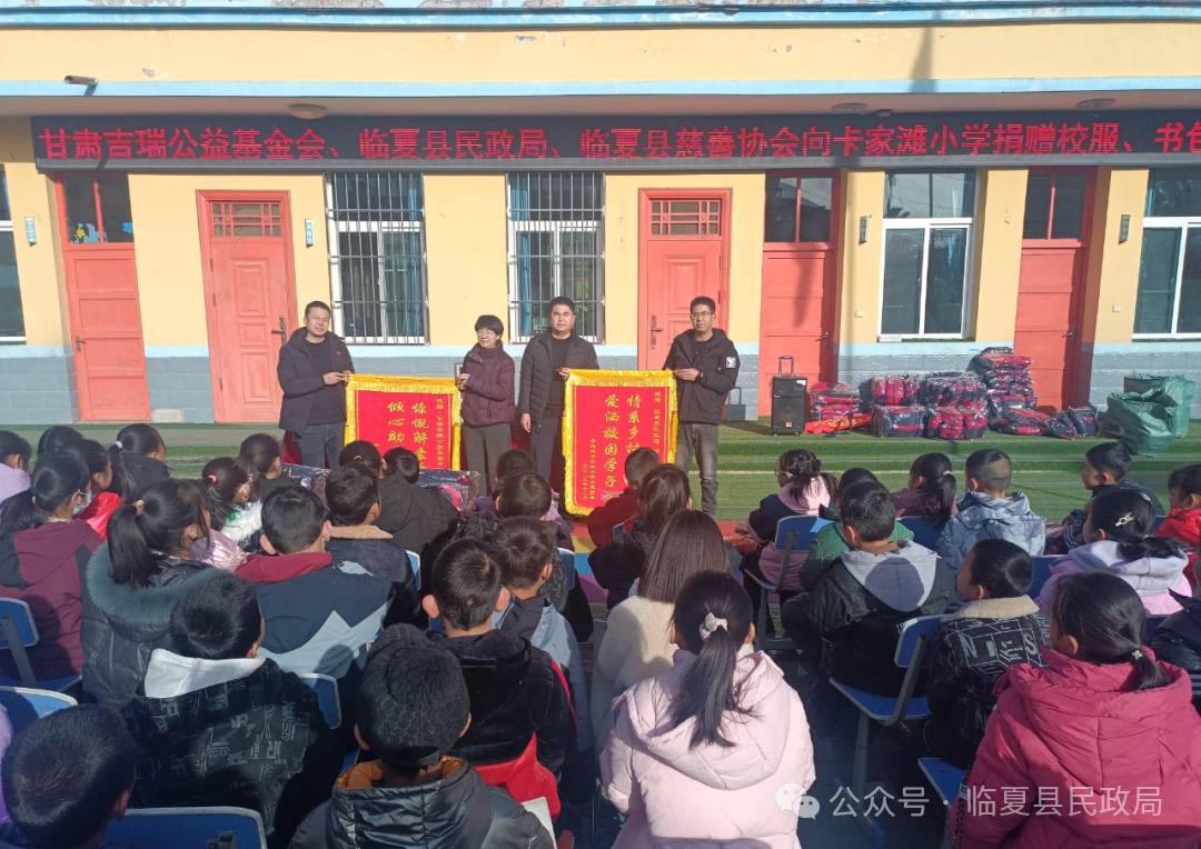 近日,甘肃吉瑞公益基金会向临夏县民政局、临夏县慈善协会捐赠人民币2万元,专项用于为尹集镇卡家滩小学87 名学生采购冬季校服和书包,切实保障农村学子冬季学习生活需求。