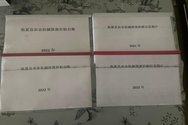 截至目前,按照2022年临夏县农机报废更新补贴方案,经过初审、联合审核、回收机具、公示等环节共完成报废更新补贴机具5台,其中报废轮式拖拉机2台,手扶式拖拉机3台;完成补贴资金1万元。已率先完成上级业务部门下达的农机报废更新5台的任务。