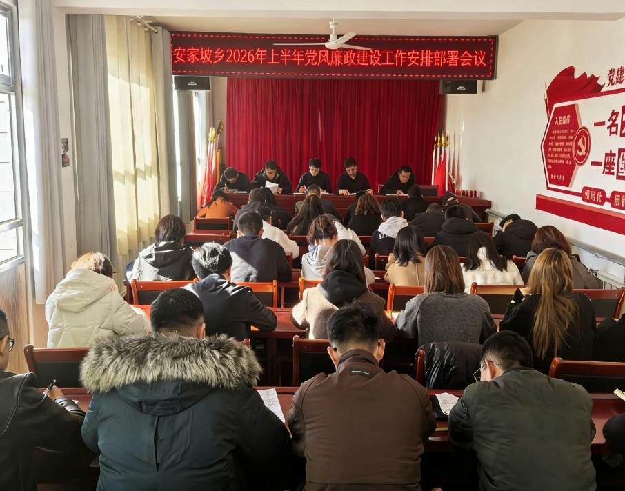 为深入推进党风廉政建设工作,进一步推动全面从严治党在基层落地生根,3月9日,安家坡乡召开2026年上半年党风廉政建设安排部署会议,乡党委书记周玉荣主持会议并讲话,全体乡村干部、各站所负责人参加会议。