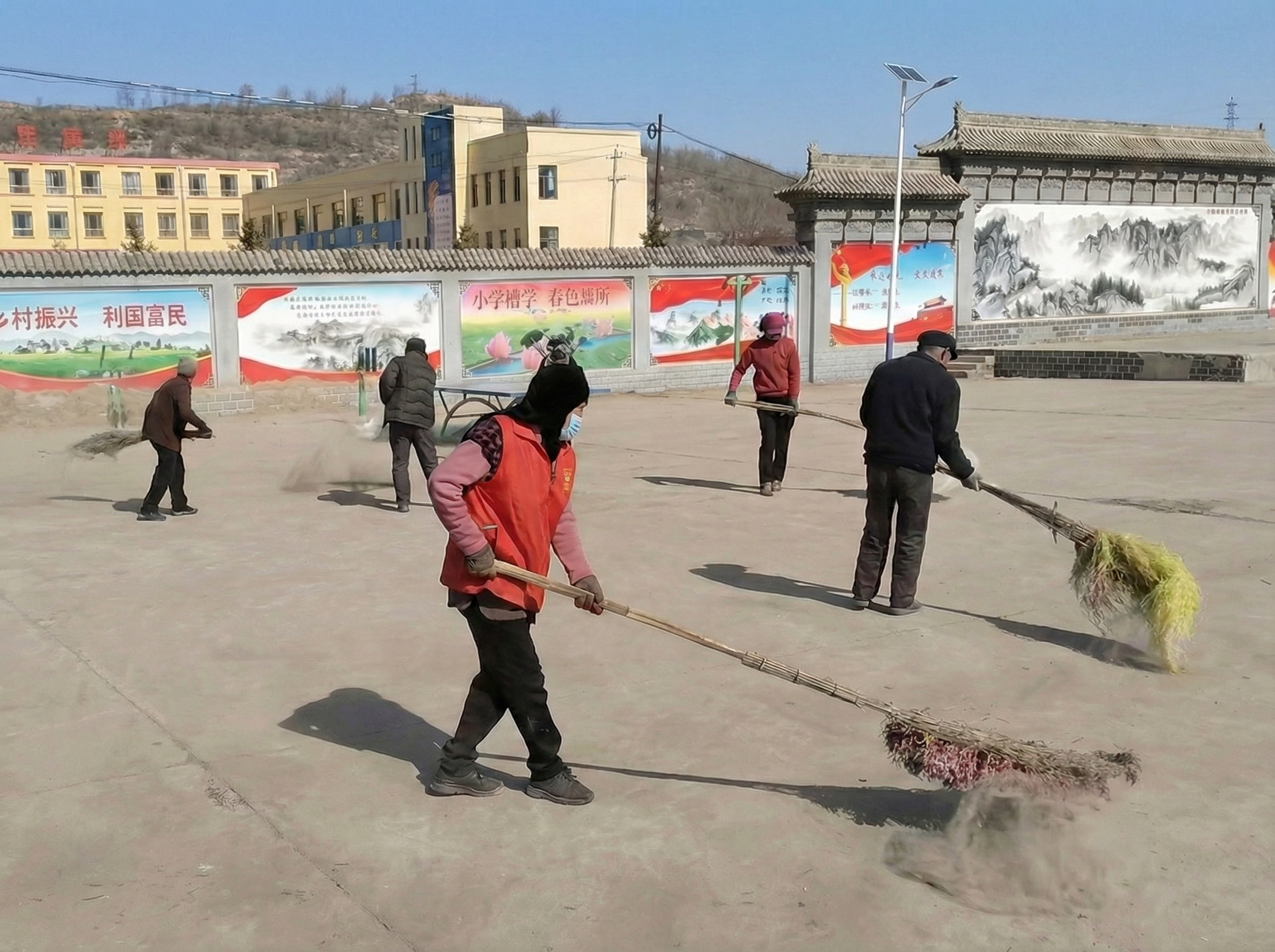 各村发动党员干部、返乡人员、志愿者等,纷纷化身“清洁卫士”,手持扫帚、铁锹等工具,对主次干道、背街小巷、