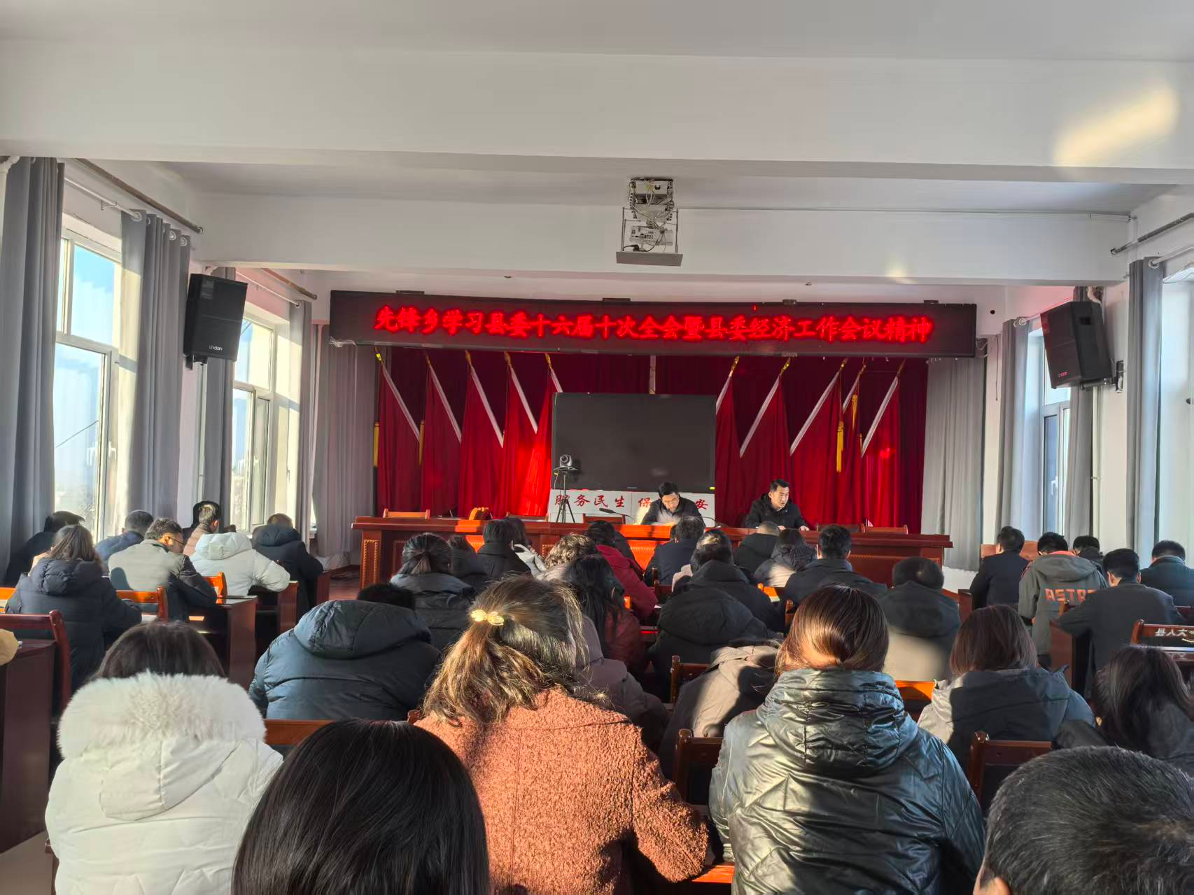 简讯一:先锋乡传达学习中国共产党临夏县第十六届委员会第十次全体会议暨县委经济工作会议精神,乡主要负责同志就如何贯彻落实好全会精神,全力抓好当前和今后各项工作进行了安排部署。会议要求,要深刻领会全会和县委经济工作会议精神的核心要义,扎实推进当前各项工作。要提高政治站位、锚定县委、县政府部署,聚焦经济高质量发展主线推进美丽临夏建设,筑牢风险防线抓实安全生产工作,锤炼过硬作风谋划 2026 年重点工作,推动学习成果转化为实效,凝聚合力为谱写中国式现代化临夏县新篇章贡献先锋力量。