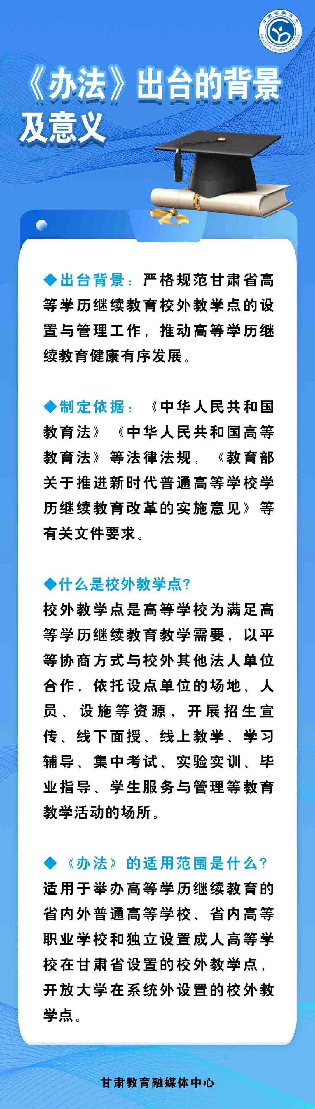一图看懂|《甘肃省高等学历继续教育校外教学点设置与管理办法(试行)》